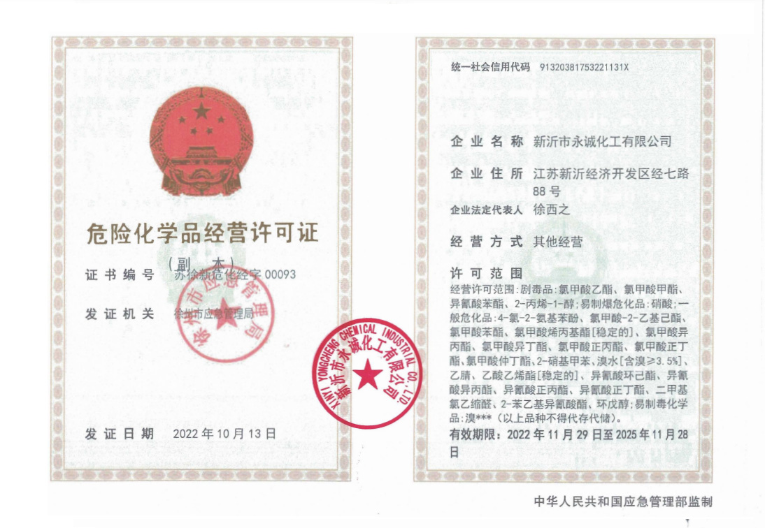 ■  郵 箱:sales@yongchengchem.com ■  網 址:www.yongchengchem.com